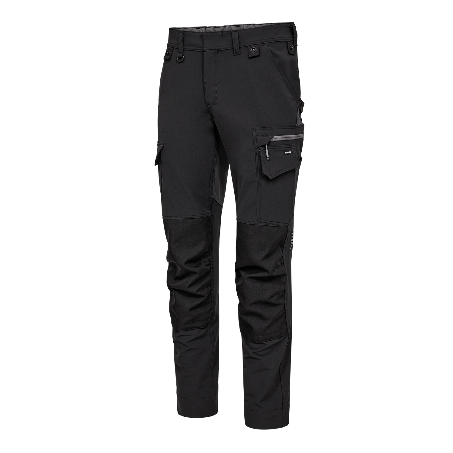 individuellen Anpassung der Knieschutzkissen. Zahlreiche Taschen bieten viel Stauraum, darunter eine Oberschenkeltasche mit Reißverschluss und eine