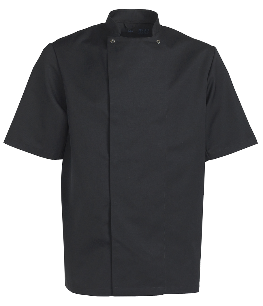 Kochjacke mit 1/4 Arm und Stehkragen, der offen ist und mehr Luft
