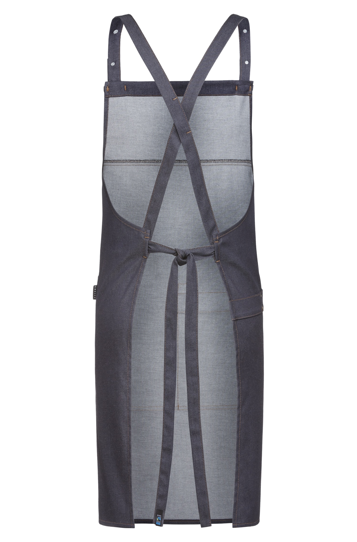 Latzschürze in Denim-Optik – zu haben in vier coolen, ideal kombinierbaren Farben. Mit einer Knopfleiste am Nackenband, so dass die Schürze unkompliziert an die eigene Größe angepasst werden kann. Praktisch: Die aufgesetzten Taschen mit Geschirrtuchschlaufe.