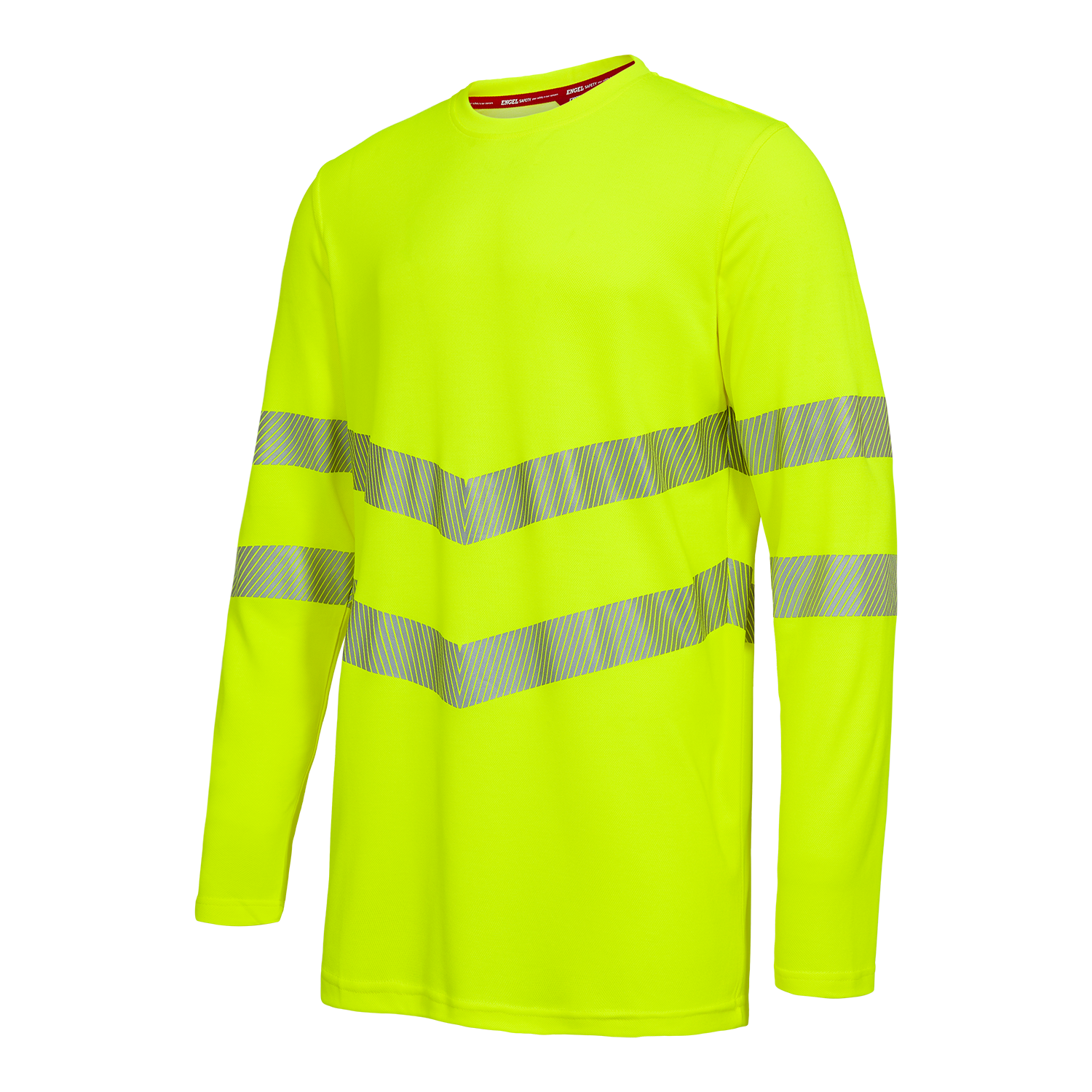 Das langärmlige Warnschutz-T-Shirt von ENGEL ist ein strapazierfähiges und bequemes T-Shirt für warme Arbeitstage, an denen du sichtbar sein musst. Das langärmlige Safety T-Shirt hat eine moderne Passform und ist aus einem leichten, temperaturregulierenden und schweißabsorbierenden Material gefertigt. Das bedeutet, dass das T-Shirt perfekt für Tage geeignet ist, an denen eine Jacke zu warm ist und du aber nach Bekleidungsklasse 2 sichtbar sein musst. Darüber hinaus hat es mehrere aufgedruckte Reflexstreifen, die dafür sorgen, dass du bei jedem Wetter gut sichtbar bist.