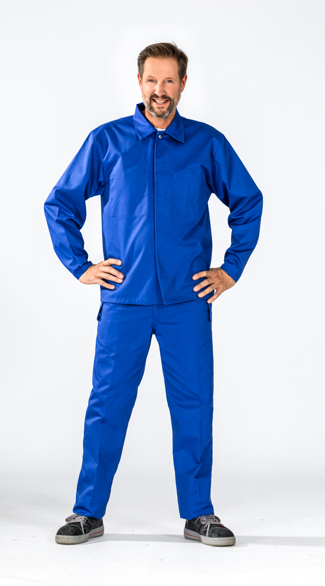 Sie ist in den Farben Reinweiß (Artikel 5310) und Kornblumenblau (Artikel 5315) erhältlich – jeweils in den Größen 42–64 (Standardgrößen) und 90–110 (schlanke Größen).