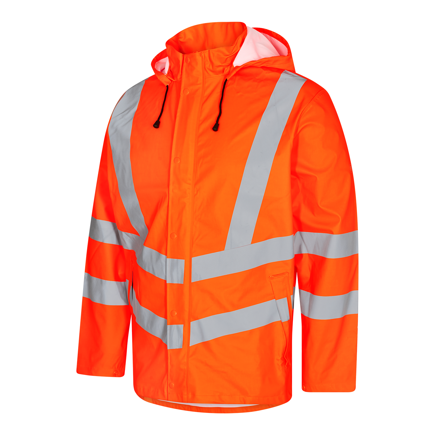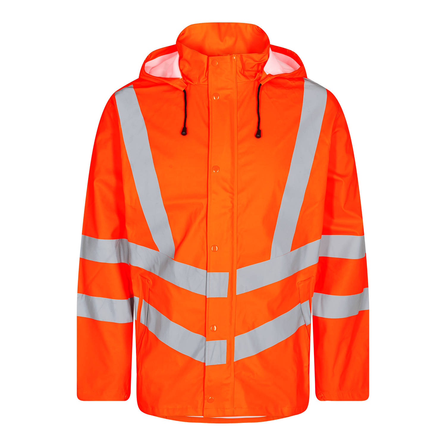 Seitentaschen sowie große Innentaschen. Abnehmbare, verstellbare Kapuze mit Platz für den Arbeitshelm. Möglichkeit zum Verstellen der Ärmel.