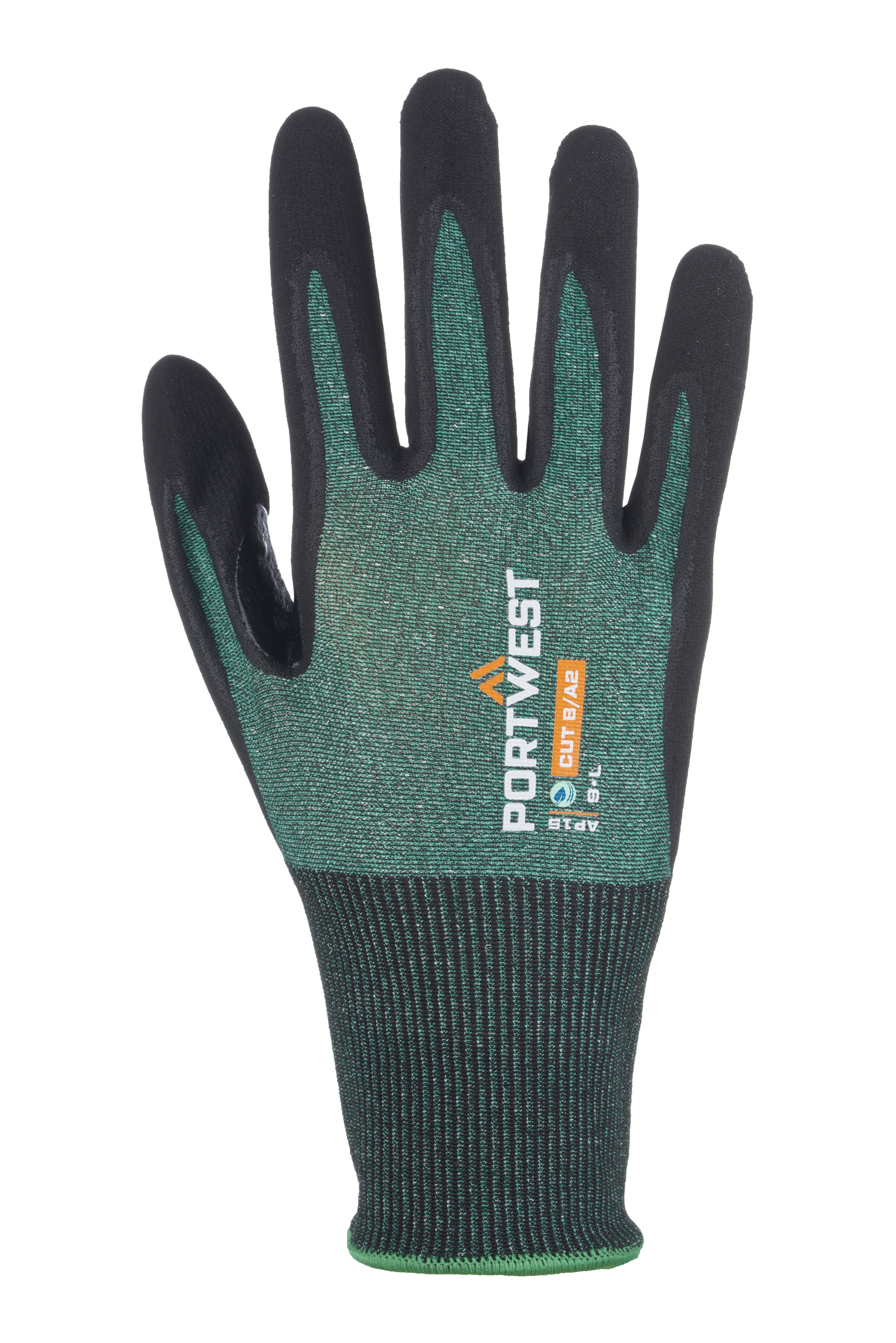 Ein verstärkter Daumenzug sorgt für zusätzliche Haltbarkeit. Das recycelte hat feuchtigkeitsableitende Eigenschaften für ultimativen Komfort. Eine einzigartige Strickstruktur mit abgesetztem kleinem Finger sorgt für eine gute Passform. Im Vergleich zu anderen Garnen weist es einen sehr niedrigen Kohlenstoff-Fußabdruck auf und ist außerdem schnittfest nach TDM Stufe B und ANSI Stufe A2, was es zu einer äußerst schützenden und umweltbewussten Wahl macht. Außerdem bietet die Mikroschaum-Nitril-Beschichtung eine 360-degreeät und ein Touchscreen-kompatibler Zeige- und Daumenfinger steigert die Produktivität. Die Daumen-Zeigefinger-Verstärkung sorgt für zusätzliche Langlebigkeit.