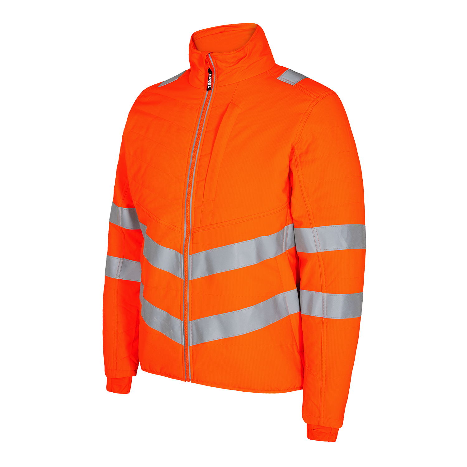 Warme, fluoreszierende Jacke im modernen Design mit wind- und wasserabweisenden Eigenschaften. Die Jacke kann mit den Modellen 1146-930 kombiniert werden, die einen Reißverschluss zum Einzippen besitzen. Reflektierender Reißverschluss vorne. Zwei Seitentaschen sowie Brusttasche mit Reißverschluss. Elastischer Bund unten. Zusätzlicher Windfang aus elastischem Material in den Ärmeln. Der Windfang mit Daumenöffnung kann zum Kälteschutz über die Hand gezogen werden. Reflexstreifen über Schulterpartie hinweg sowie rund um Ärmel und Taille. Bekleidungsklasse 2. Getestet nach 50 Wäschen.