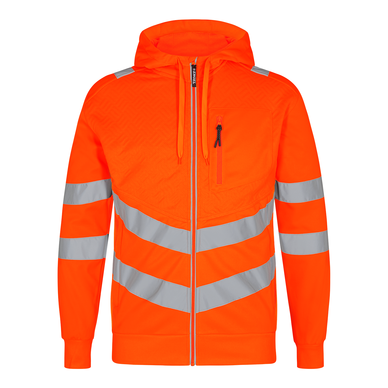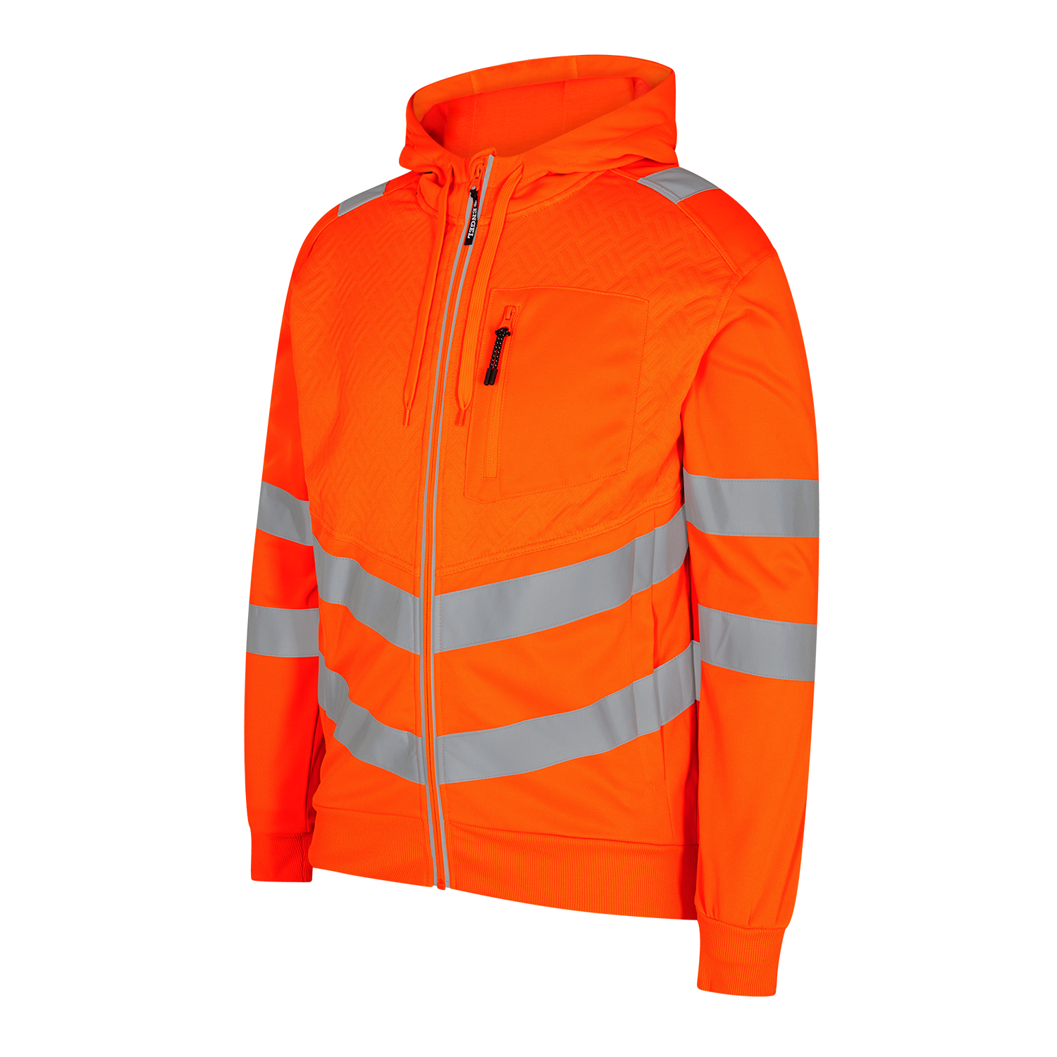 Funktionelle, fluoreszierende Sweatcardigan im modernen, attraktiven Design mit Stretchfutter. Leicht angerauter Innenseite macht den Stoff weich und angenehm auf der Haut. Reflektierender Reißverschluss vorne. Zwei geräumige Seitentaschen sowie Brusttasche, jeweils mit Reißverschluss. Die Sweatcardigan besitzt eine Waffelstruktur auf der Vorderseite und eine Kapuze. Rippstrick an Ärmeln und Saum unten. Dehnbare Reflexstreifen über die Schulterpartie hinweg sowie rund um Ärmel und Taille. Bekleidungsklasse 2. Getestet nach 25 Wäschen.