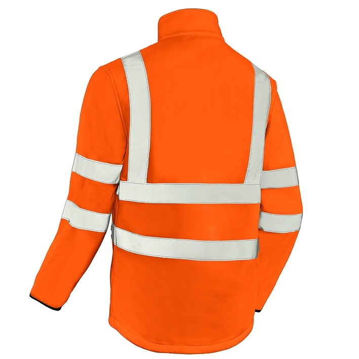 Hochsichtbare Warnschutz-Softshell-Jacke mit umlaufenden Reflexstreifen um Körper, Ärmel sowie über die Schulterpartien (Hosenträgerreflexstreifen). Eine hohe Wasserdichtigkeit des Gewebes sowie ein verlängertes Rückenteil ermöglichen eine verlängere Tragezeit auch bei ungemütlichem Wetter. Eine aufwendige Innenverarbeitung mit diversen Verstaumöglichkeiten sorgt für eine hohe Praktikabilität.