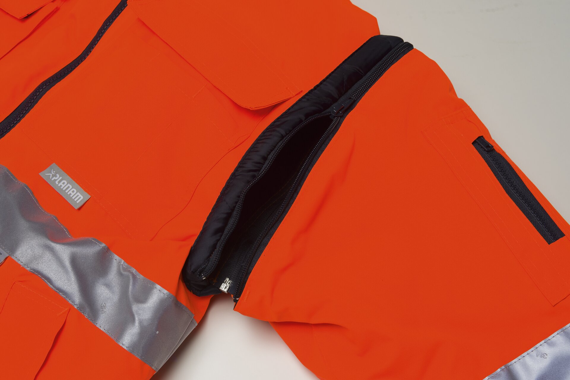 - Ärmeltasche mit Reißverschluss auf dem linken Ärmel