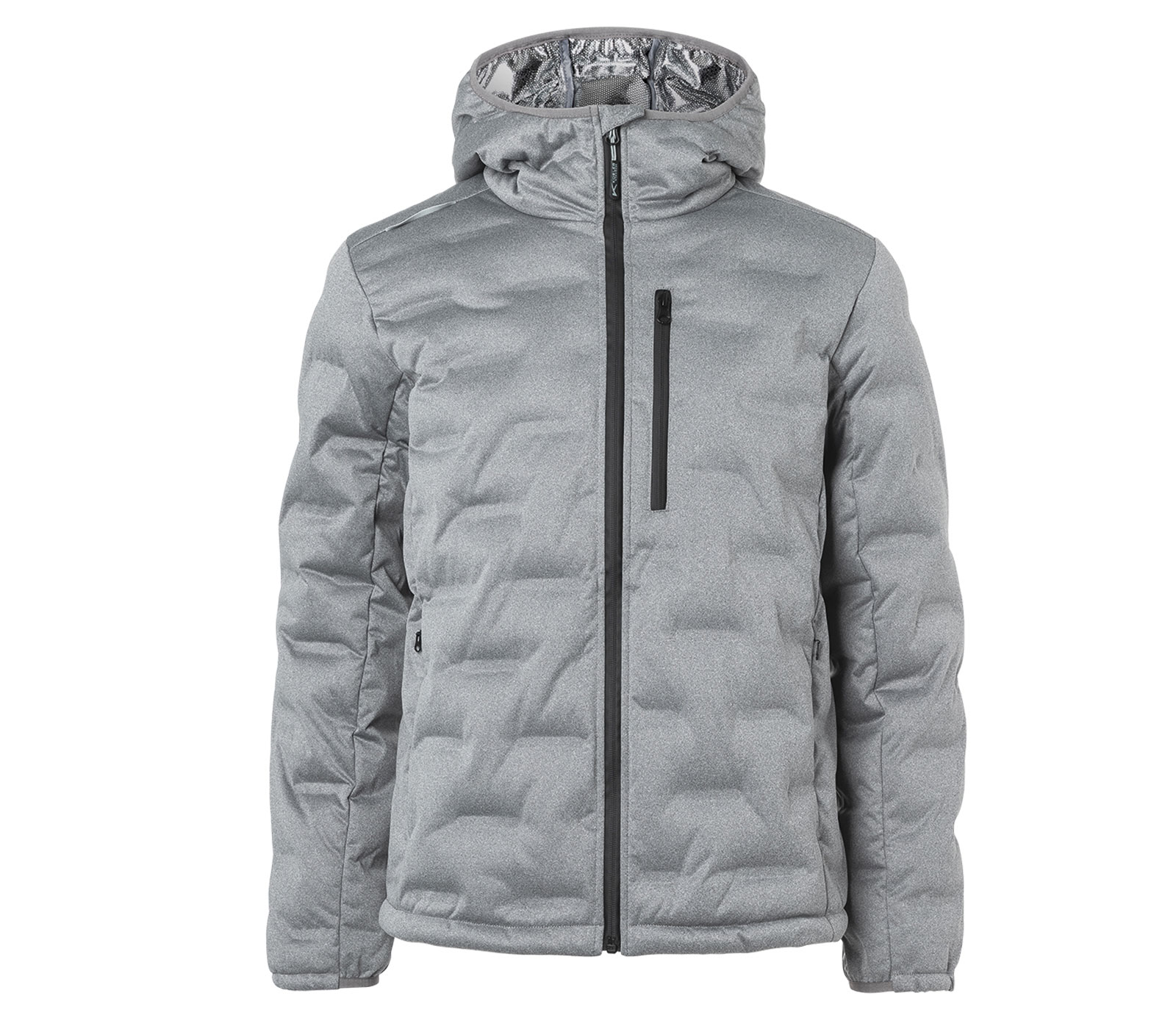 - Jackeninnenseite mit Silber glänzender Beschichtung reflektiert Wärme und isoliert bei Kälte (Rettungsdecken-Prinzip)