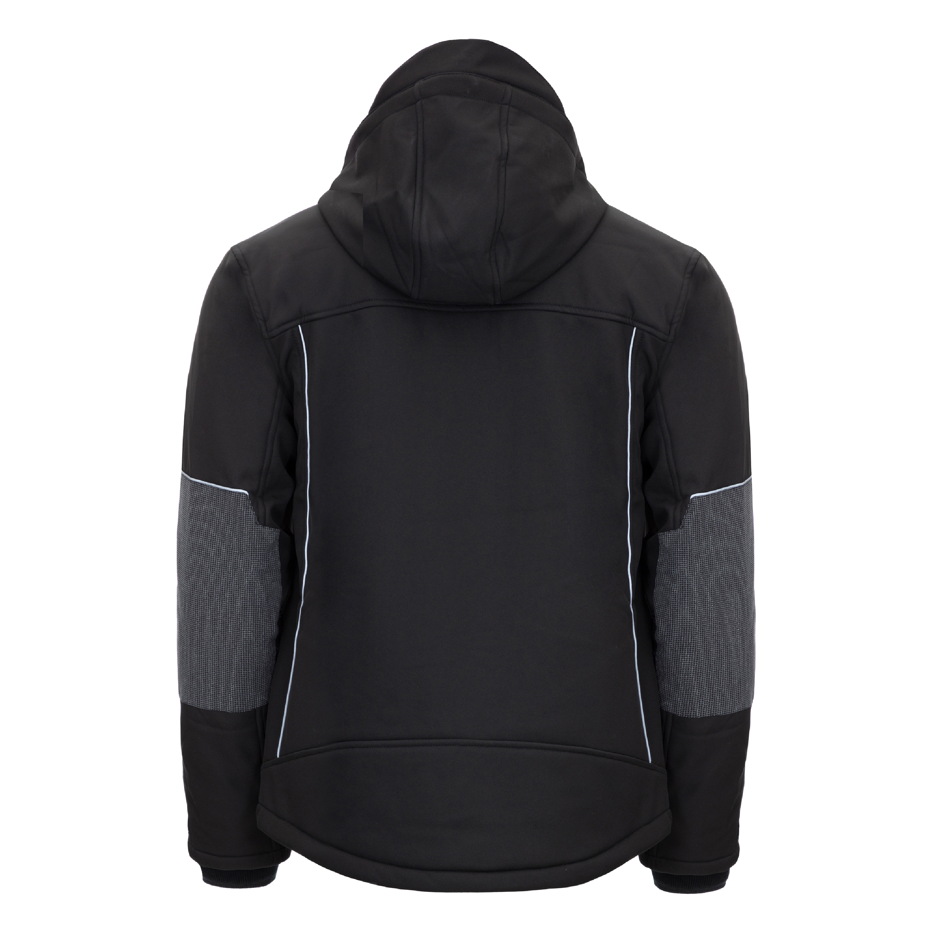 NITRAS MOTION TEX PLUS, Winterjacke, schwarz (Farbcode: 1000), 340 g/qm, hoher Tragekomfort dank weichem Softshell-Material mit wasser- und windabweisenden Eigenschaften und verlängertem Rücken, verstellbare Ärmelabschlüsse mit Klettverschluss und Kordelzug im Saum für optimalen Sitz und Halt, weiches und wärmendes Winterfutter, Verstärkungen an Ellbogenpartie für hohe Widerstandsfähigkeit, Reflexelemente für bessere Sichtbarkeit, Stehkragen, durchgehender YKK-Reißverschluss mit Kinnschutz und Windstopper innen und außen, Innen-, Brust- und Seitentaschen, Pulswärmer für kältere Temperaturen, Kapuze mit Kordelzug zur Fixierung, Oberstoff: Wassersäule: 8.000 mmH2O / Atmungsaktivität: 3.500 g/qm/24h, Comfort Fit